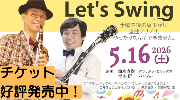 🎼【お馴染みの名曲をバリバリ「スウィング」!】 2026/5/16(土)「Let’s Swing」