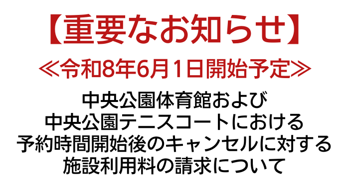 - 2026.04.02施設追記あり【重要なお知らせ】予約時間開始後のキャンセルに対する施設利用料の請求について(中央公園体育館・中央公園テニスコート)