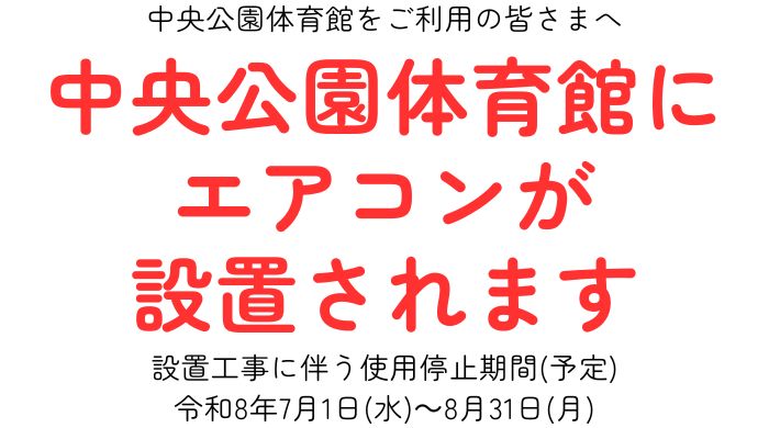 - 2026.01.30施設<お知らせ>中央公園体育館にエアコンが設置されます。