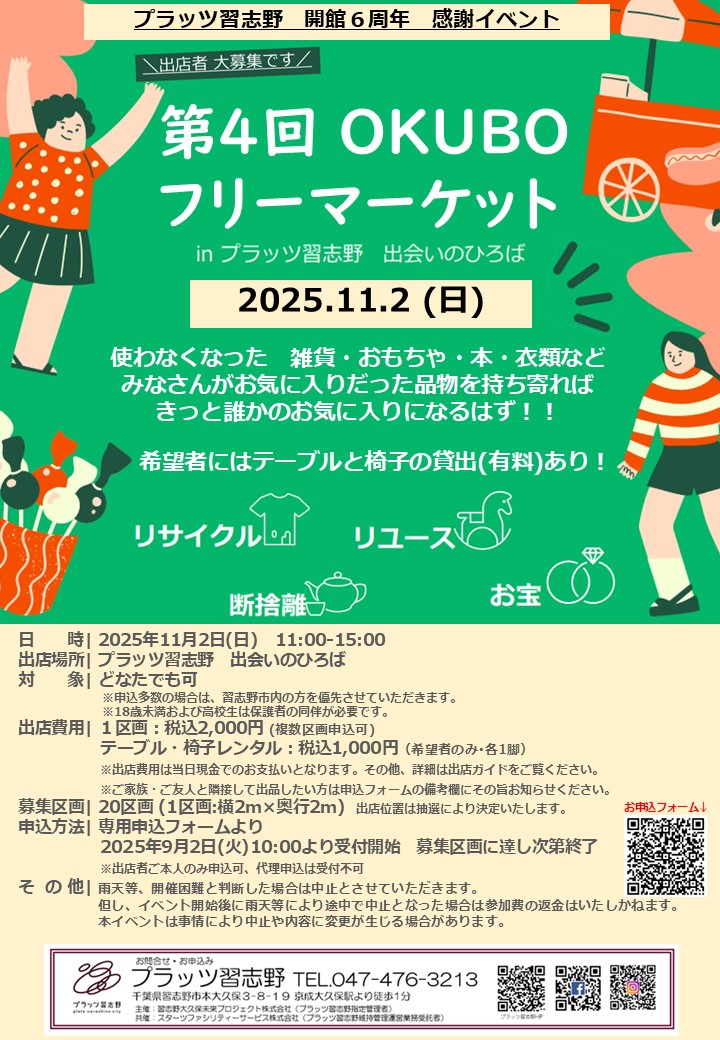 第4回 OKUBO フリーマーケット in プラッツ習志野 出会いのひろば